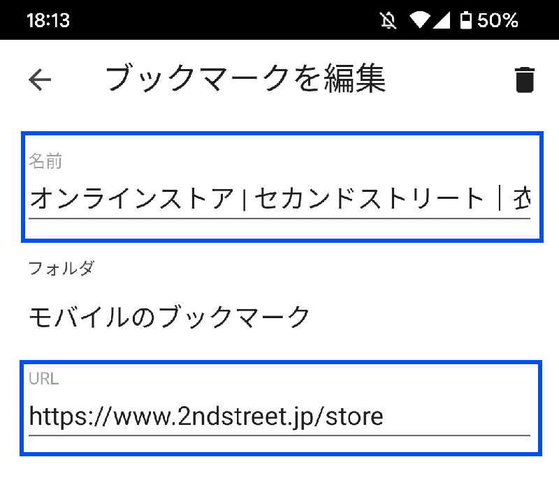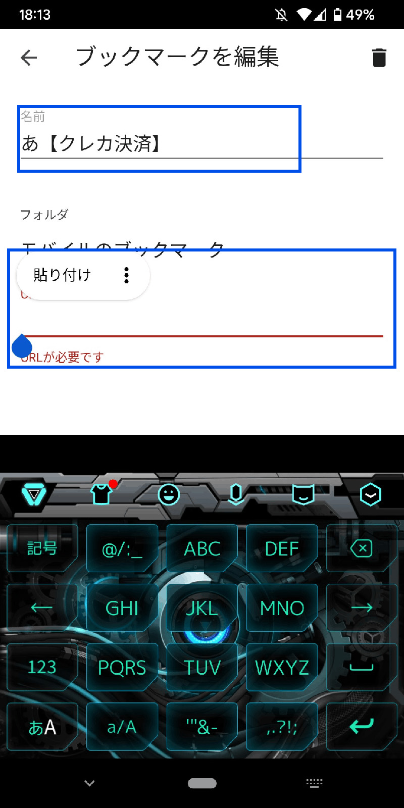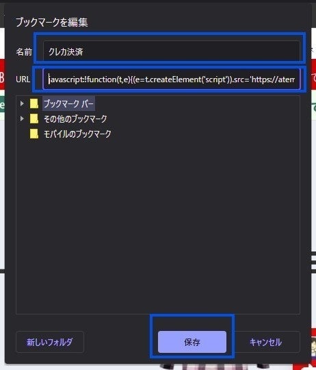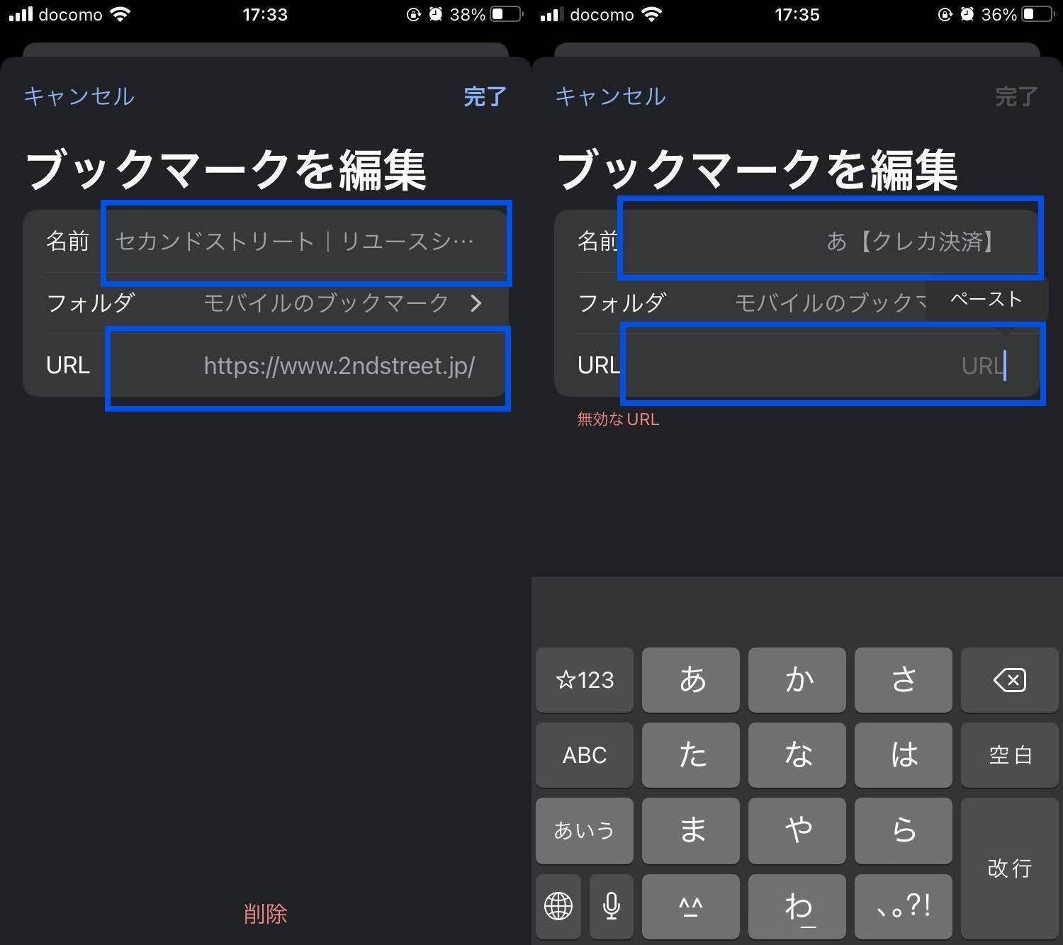 ⑥ブックマークの名前(タイトル)とURLを貼り付け