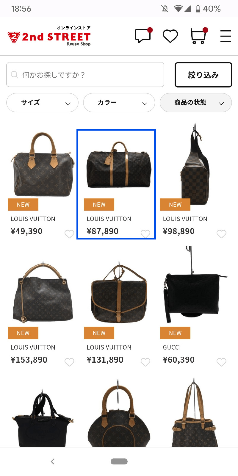 商品ページを確認します。新着商品でスピード重視の場合は、画像は1枚かせめて数枚程度を確認。