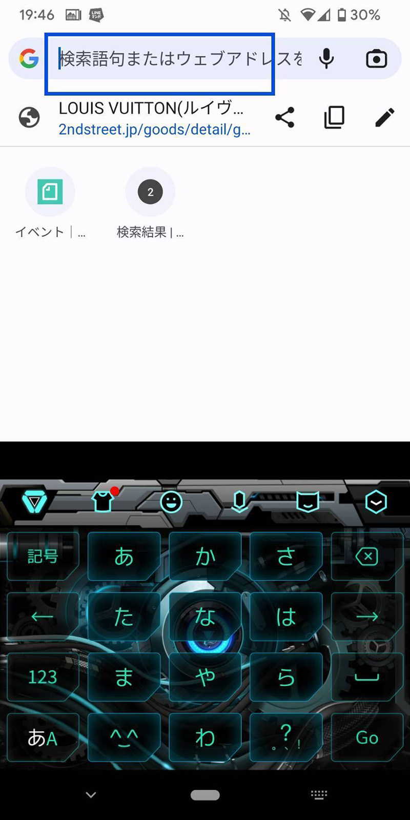 商品ページの上部に、アドレスバーが存在します。ここのアドレスバーをタップ(クリック)して「あ」を入力します。