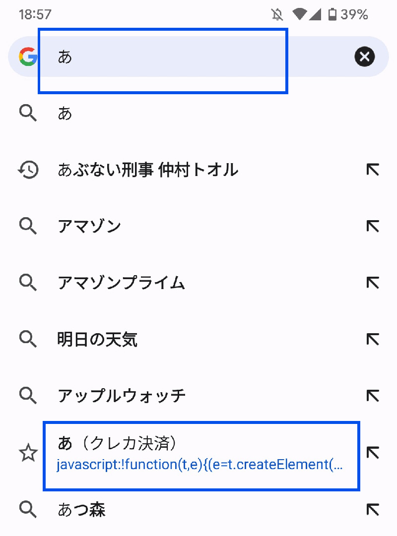 ここのアドレスバーをタップ(クリック)して「あ」を入力します。